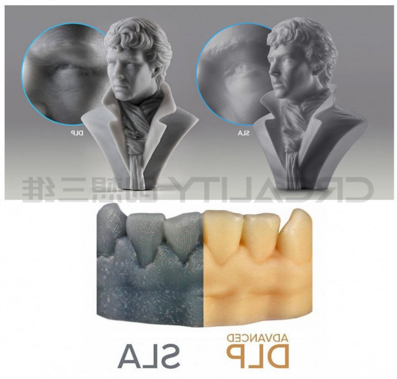 DLP 和SLA的原理和工作模式大同小异,但他们使用的耗材不一定是可以通用的,因为两种技术的光源的功率密度差异较大。但由于组成相似,打印出的部件在性能相差不大。