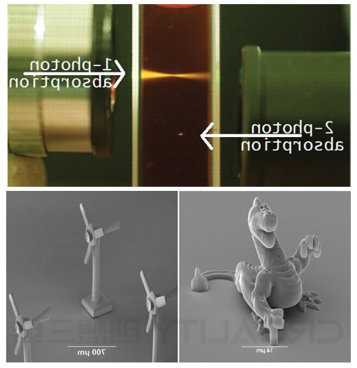 在目前的SLA和DLP 3D打印机中,聚合光敏树脂的是单个光子。目前,一种称为双光子聚合(2PP)的新型激光辐射主要用于研究和高端应用,它利用两个激光脉冲在空间中的交叉点固化树脂,由于该过程的非线性特性,可以实现大约0.1μm的分辨率。这是通过控制激光脉冲能量和脉冲频率来完成的,该技术远不是普通消费者所使用的技术,但代表着更高标准的开始。