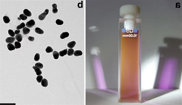 该实验指出:“时间依赖性研究表明,小金核的形成在时间上聚集在一起,形成与第一颜色变化相伴随的纳米线状结构。第二次颜色变化,从墨黑色到紫色,伴随着散射的增强,使紫色溶液呈棕色反射。在沸腾的同时,金纳米线碎裂,形成具有大头部和细长尾巴的纳米颗粒,与蝌蚪相当。随着时间的推移,尾巴开始缩小。“