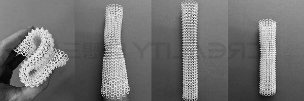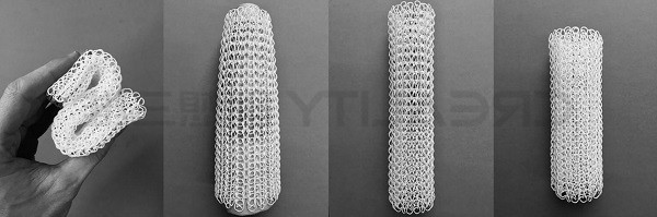 结构显示压缩后恢复良好,并具有适当的灵活性(我们很想知道这个属性能持续多久)。 比克罗夫特对这项研究感到鼓舞,并表示它展示了3D打印管状针织结构的潜力。