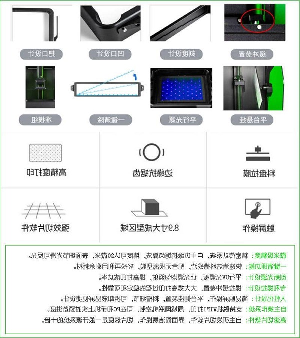 LD-003配置了精磨直线模组、平行UV光源、提拉缓冲等创新性模块,大幅提升了设备的性能精度和可靠性。最为关键的是,LD-003采用了一块8.9寸的投影屏,在保障精度的前提下,提供了市场上同类产品中少见的大成型尺寸。