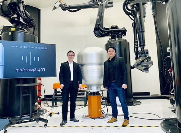 新加坡定位和空间技术性大公司创始人在Relativity的金属3D打印机前合影
