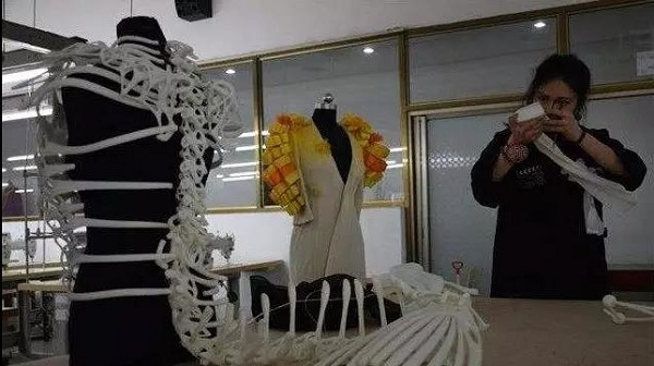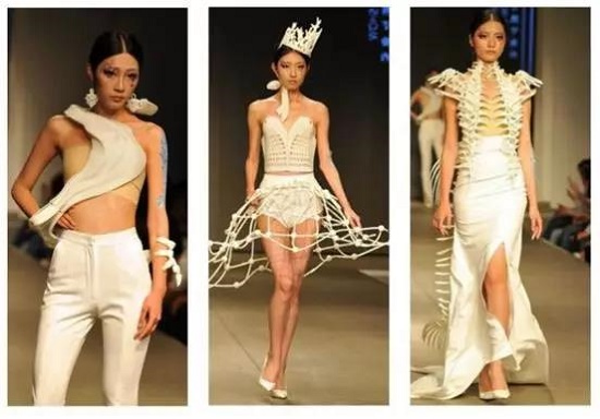 近年来,越来越多的服装系学生用3D打印完成毕业设计。曾经就有武汉纺织大学的学生用3D打印技术完成毕业设计,时尚元素和3D打印技术的融合让学生的创意完美呈现,这些用3D打印技术完成的服装让大家眼前一亮。