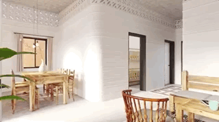 每一家3D缩印住房征地赔偿120㎡米,住房內部服务器约55㎡米。这些的在户外构思带有烹饪技巧和膳食服务器,屋面悬垂延长到以上和后来,档住日晒,并放到雨量,适应能力热带地区坏境。原因本市气温和地震灾区的工作的坏境标准,3D缩印的住房也以及具备了地基构造的新技术和提升构思,在墙顶空腔中来了其他的的稳固加强。