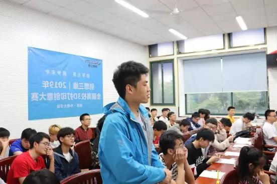 参赛选手展现完作品后,创想三维 的技术代表在现场为总决赛参赛选手点评与评分。现场的学生也踊跃的为作品提出问题,主办方CSU FYT机器人战队还准备了精美的礼物送给提问的同学。