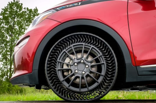 通用汽车打算与米其林一起开发这种无气车轮总成,并计划早在2024年就将其引入乘用车。