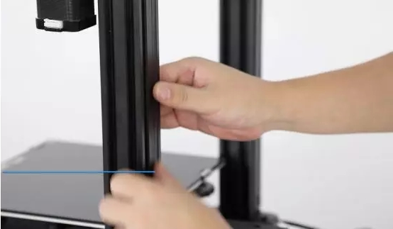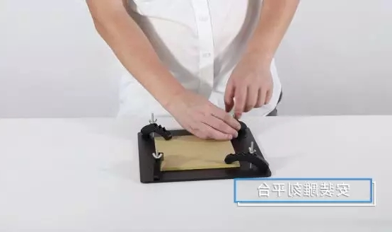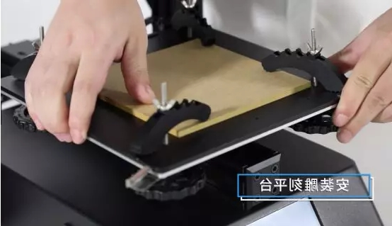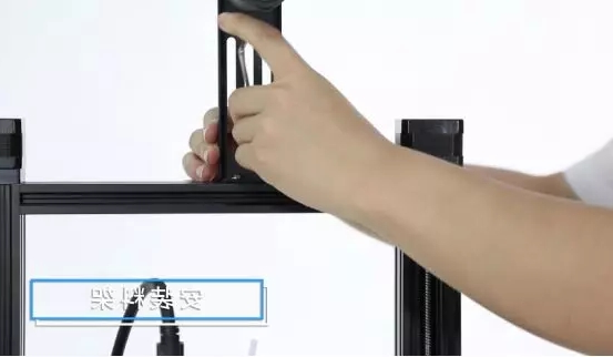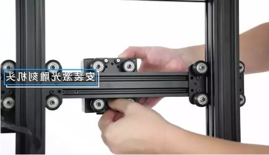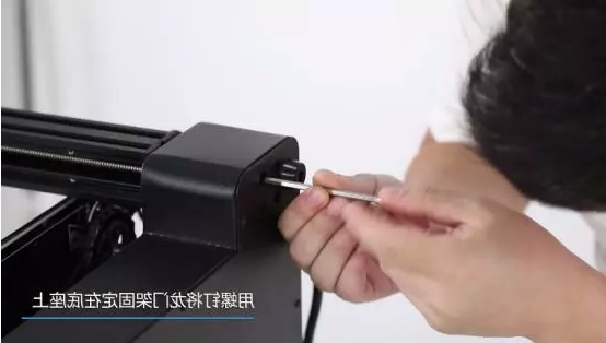 2、 第一个把龙门架与脚座的螺钉孔对准激光。