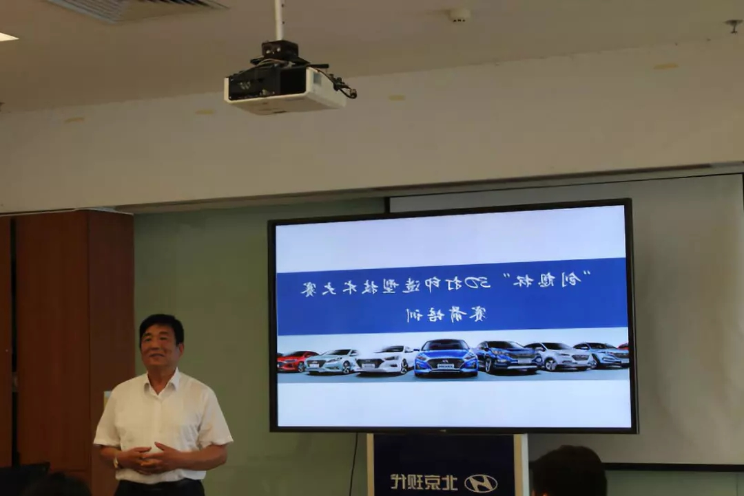北京现代汽车有限公司人力资源部金贞梅部长致辞,金部长希望参加本次培训的学员认真听认真练,争取在决赛中取得好的成绩。
