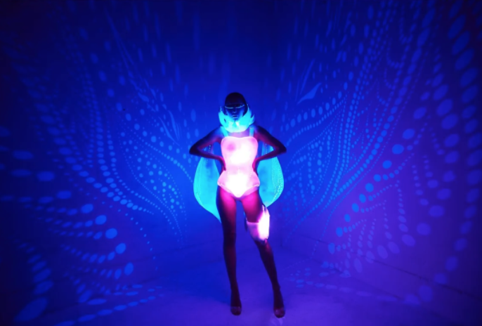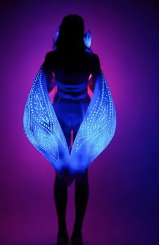 四川美术学院服装与服饰设计系的谢紫梦这次拿到了材料创新奖,这个微胖的萌妹子想法却很暗黑,她表示,她的设计理念是基于对未来世界设想,地球因环境污染形成极夜,成了赛博朋克的世界,那么环境对服的装审美需求首先是光,光和影的元素成了人们的崇拜。