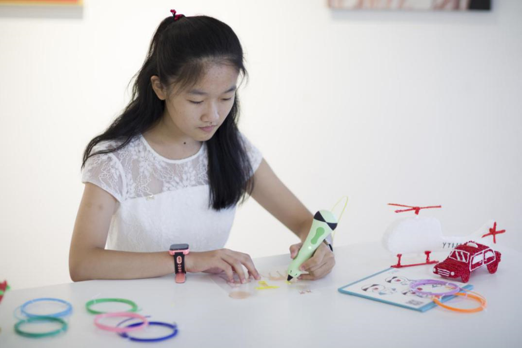 3D打印笔可以说是3D打印技术在青少年中应用的一款优秀产品,3D打印笔是将3d打印机的挤出装置设计在一根笔内,运动控制部分则完全由人手来控制,玩家可以根据个人的想法凭空进行创作。当然,人手的控制精度远远低于机器,但是对于有艺术细胞的孩子们,依然能够创作出绚丽的作品。