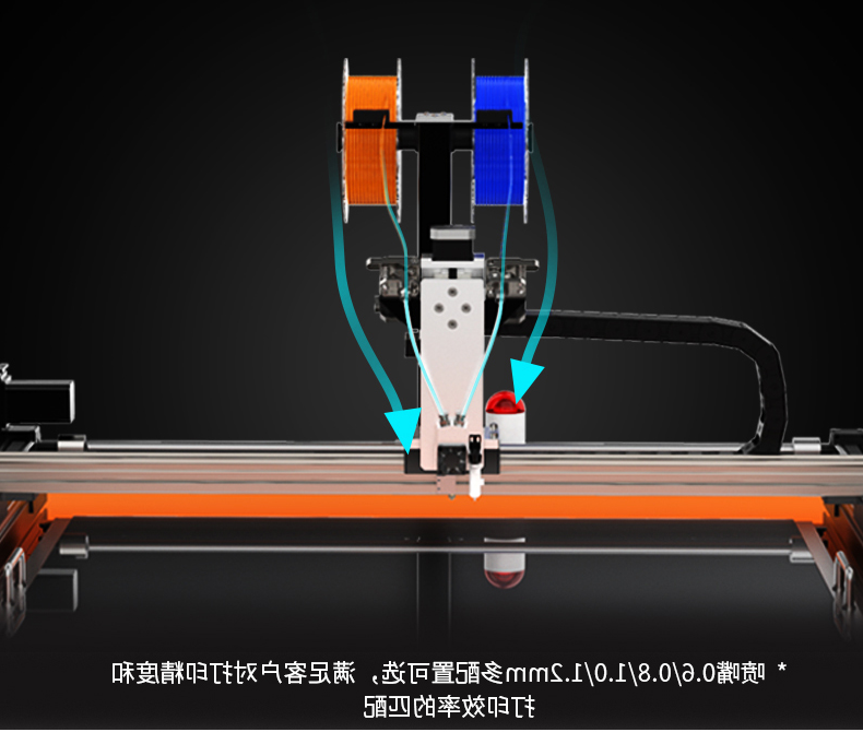 2、传统3D打印机一般采用单喷头,只能打印一种颜色。K8发光字3D打印机采用二进一出的双色单喷头打印,可实现两种不同颜色的材料同时打印。发光字3D打印机可以自动换色,无需人工,可以实现在一秒内完成换色。