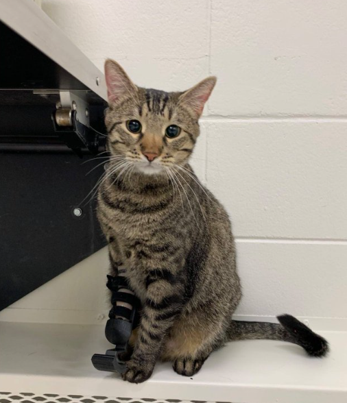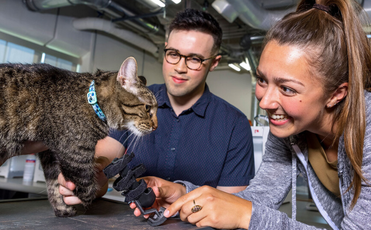 Jensen——在社会深造微生物过程体设计工作 (BSEN) 470 和 BSEN 480 的课程的大学生——将这些 让我学的大那部分学识用在做成三足假肢猫叫奥利弗。