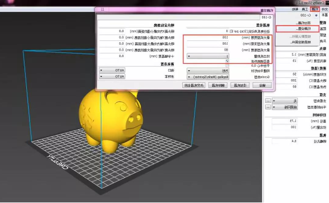 常常 很多新手在使用Creality Slicer时可能不理解要修改哪些参数,一般情况下,使用不同的机器,我们都要相对应的修改成型尺寸、喷头数量,甚至还要勾选是否拥有热床等。