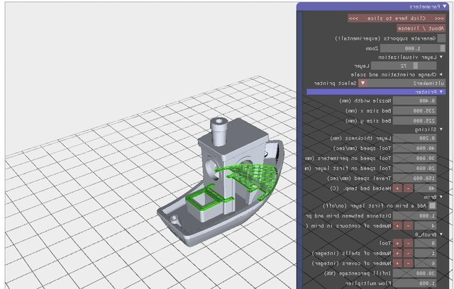 Slic3r积累了多年的3D打印设置、材料和3D打印机匹配度的问题,许多切片软件的新功能都来源于Slic3r,比如多个挤出机、边缘、微层、桥检测、命令行切片、可变层高度、顺序打印、蜂窝填充、网格切割、模型切割等等。