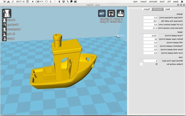 Cura支持STL,3MF和OBJ文件格式,也支持文件修复,支持显示打印头路径、打印时间和材料使用量。
