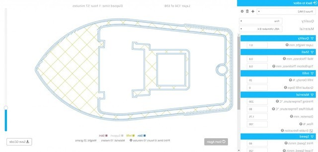 特色:切片后,通过滑块查看每一层的预览,显示预估打印时间、材料用量和最终模型重量。此外,Spaghetti填充功能能给模型带来不一样的效果和体验。