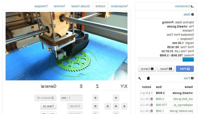 OctoPrint是一款轻量化的软件,用来管理用户的3D打印机,允许用户通过Web浏览器和移动设备控制监控打印机的状态。OctoPrint可以安装在Raspberry Pi系统上,用户可以自由扩展,例如带有网络摄像头和插件。