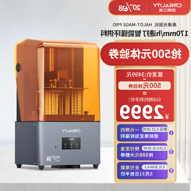 10.3厘米8K打印图片屏 HALOT-MAGE是1款偏向手办业余烧友的轻数率高性价比高光凝固热敏打印机机,与PRO游戏版本一模一样搭载了10.3显示屏幕尺寸8K LCD显示屏幕、气体油烟净化系统软件和“魔穹”连体翻盖规划,为设计构思供给越多可能性。始终以业主为管理中心的创想三维 图,一样,我们都决策618最新福利赋能,拿到价2599(参入预购就可以),掐指一算,在原始基础上上又省了30零元。 发售时间间隔:5.26 20:00 付尾款精力:5.31 20:00