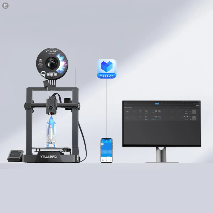 Ender-3 V3 KE内部自带WiFi,使用局域网连接复印和云复印,可能够 PC互联网Creality Print切块系统软件和华为移动端创想云APP实施远控复印和监视;也使用多机调整,有利服务管理两部复印机。