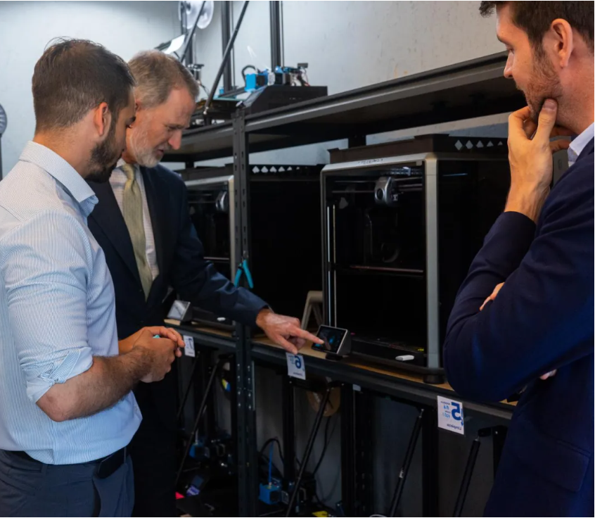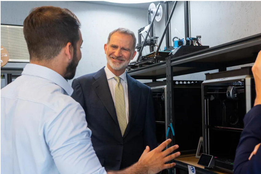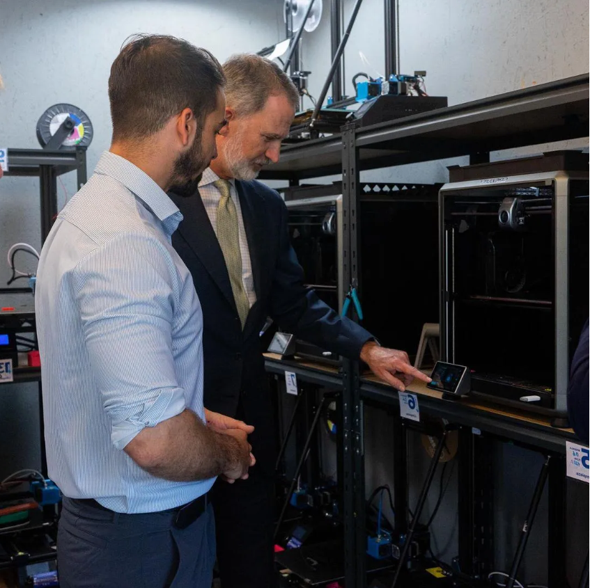 12月7日,土耳其罗马皇帝费利佩六世访问共享浏览了Ayúdame 3D为于马德里La Nave 的多元化主的办公楼室。创想3D的企业合作小伙伴Ayúdame 3D创使人Guillermo耐心到访了罗马皇帝、科学实验的多元化周围长和马德里镇长。访问共享浏览时间,罗马皇帝深入研究询问了3D彩印技术性的社会转型能力,相应Ayúdame 3D综合创想3D一同生命的进化3D彩印在公益活动事业发展上的广泛应用,并亲自用到创想3D的K1 Max彩印机做成假肢指尖。