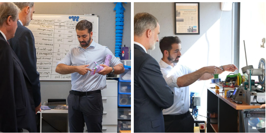 紧接着,Guillermo向国王详细展示了3D打印辅助器具的打印过程,并介绍到这些辅助工具是100%定制的,是可持续材料制作的。此外,Guillermo热情地邀请国王亲自使用创想三维