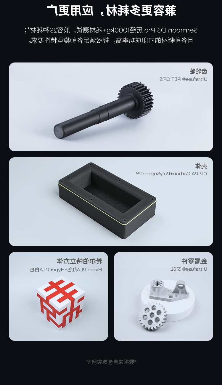· 支持耗材:PLA/PETG/PET/TPU/PVA/BVOH/HIPS/PA/ABS/ASA/PC/PC-ABS/PLA-CF/PA-CF/PET-CF/Metal等